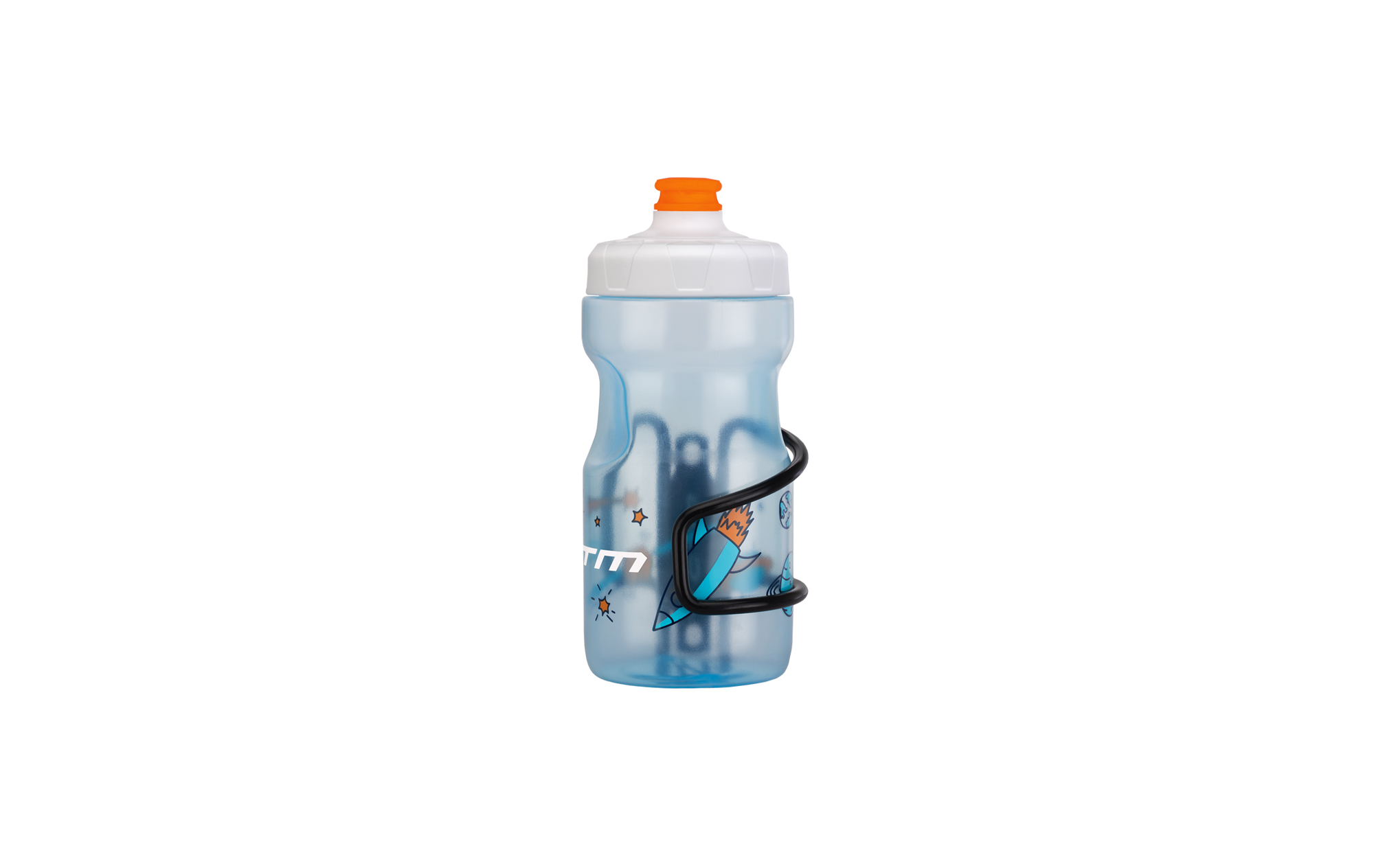 Set detskej fľaše z flexibilného priehľadného plastu a košíku; Menší tvar padne deťom dobre do ruky; Mäkký a príjemný náustok s dostatočným prietokom vody zabezpečí hydratáciu bez problémov; Ľahký hliníkový košík s bočným vyberaním pre jednoduchú manipuláciu aj pri menších rámoch; BPA free; Objem: 400ml; Farba: modrá