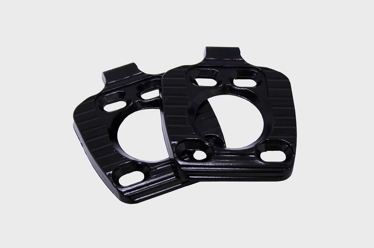 Pár plastových doštičiek pre 3-dierkové cestné cyklistické tretry, magnetické skrutky.