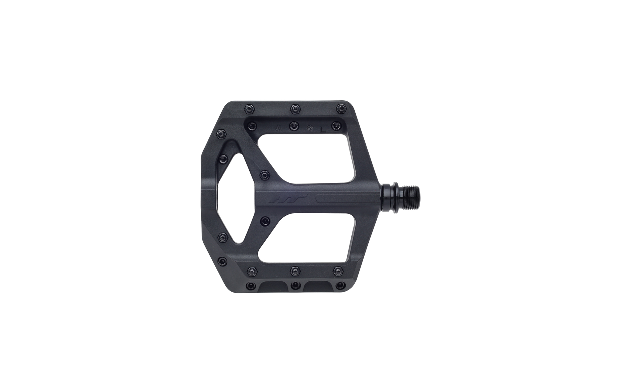 MTB platformové pedále; Plastová verzia obľúbených SUPREME pedálov s hlbokým konkávnym tvarom; Telo: super odolný a spevnený nylon; 12 mm oska z CNC CrMo; Zapuzdrené ložiská (2) / klzné púzdra; Vymeniteľné SAP piny - 9 z každej strany; Váha: 345g; Rozmer: 101 x 100 x 19 mm; Farba: čierna