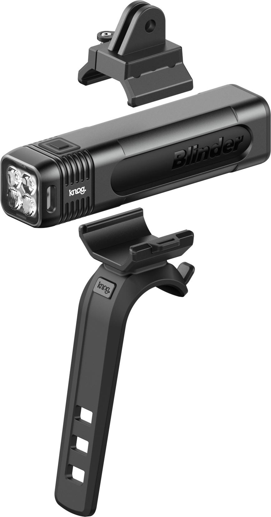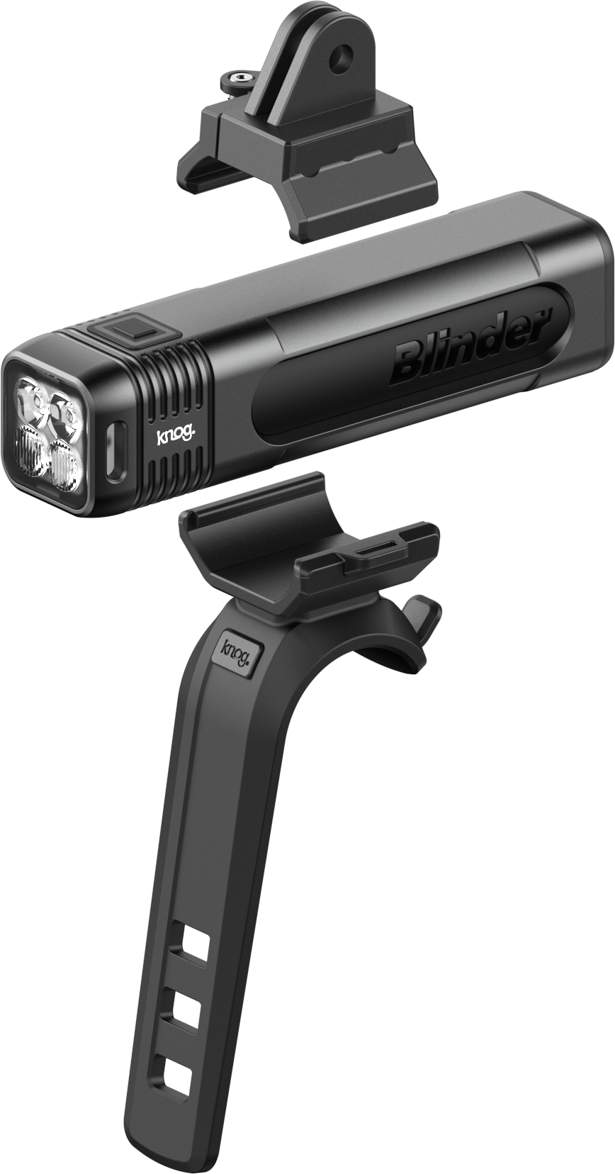 Predné svetlo KNOG Blinder 900 so 6 svetelnými režimami kombinuje robustnú CNC konštrukciu, kompaktný dizajn, perfektné uhly svitu, silný jas a mnoho možností montáže. Produkuje výkonný 900 lumenový lúč zameraný na cestu. Špičková technológia batérií poskytuje 2 hodiny prevádzky pri plnom jase a až 120 hodín prevádzky v režime Eco Flash. Súčasťou balenia sú dva úchyty - úchyt v štýle Go-pro pre montáž pod počítač a odolný gumový popruh na riadidlá.