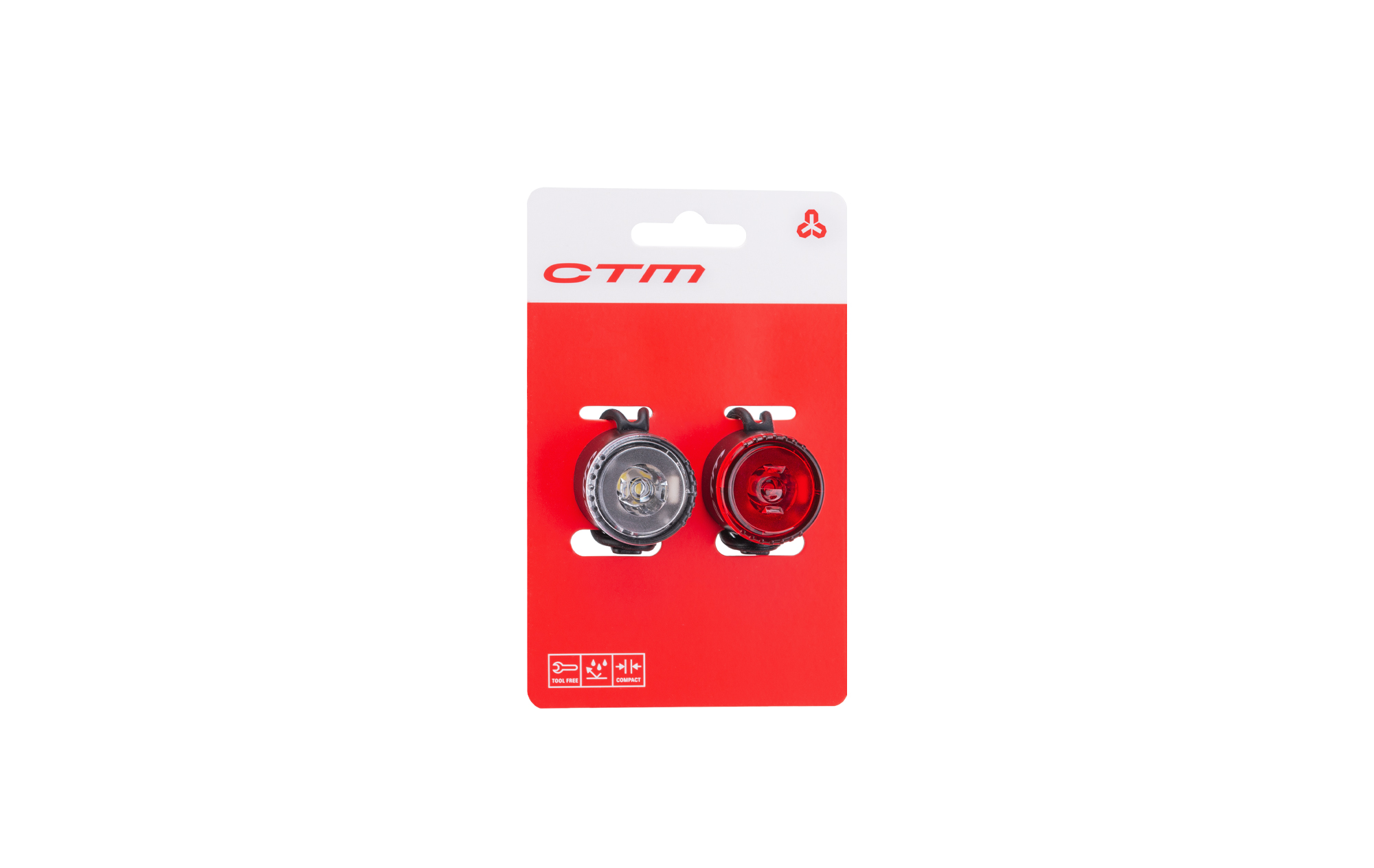 "Sada mini osvetlenia; Jedna biela LED dióda (5lm), jedna červená led dióda (1,6 lm); Funkcie: blikanie - stále svetlo; Dlhá výdrž batérie - až 210 hodín; Univerzálne uchytenie pomocou gumových očiek; Obsahuje dve blikačky: biele a červené svetlo a batérie: CR2032x2; Rozmer: 30x24x30 mm; Farba: čierna"