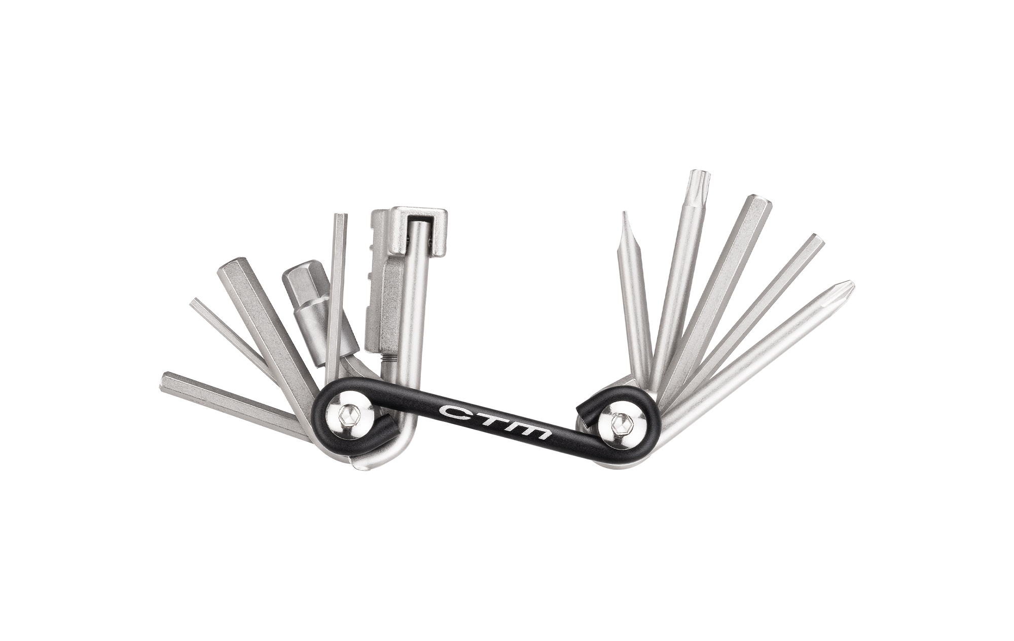 Multifunkčné náradie 11 v jednom; Obsahuje inbus 2/2,5/3/4/5/6/8 mm; Krížový a plochý skrutkovač; Torx T25; Nitovač pre 7-12 rýchlostné reťaze; Materiál: kľúče CR-V oceľ a hliníkové nožičky