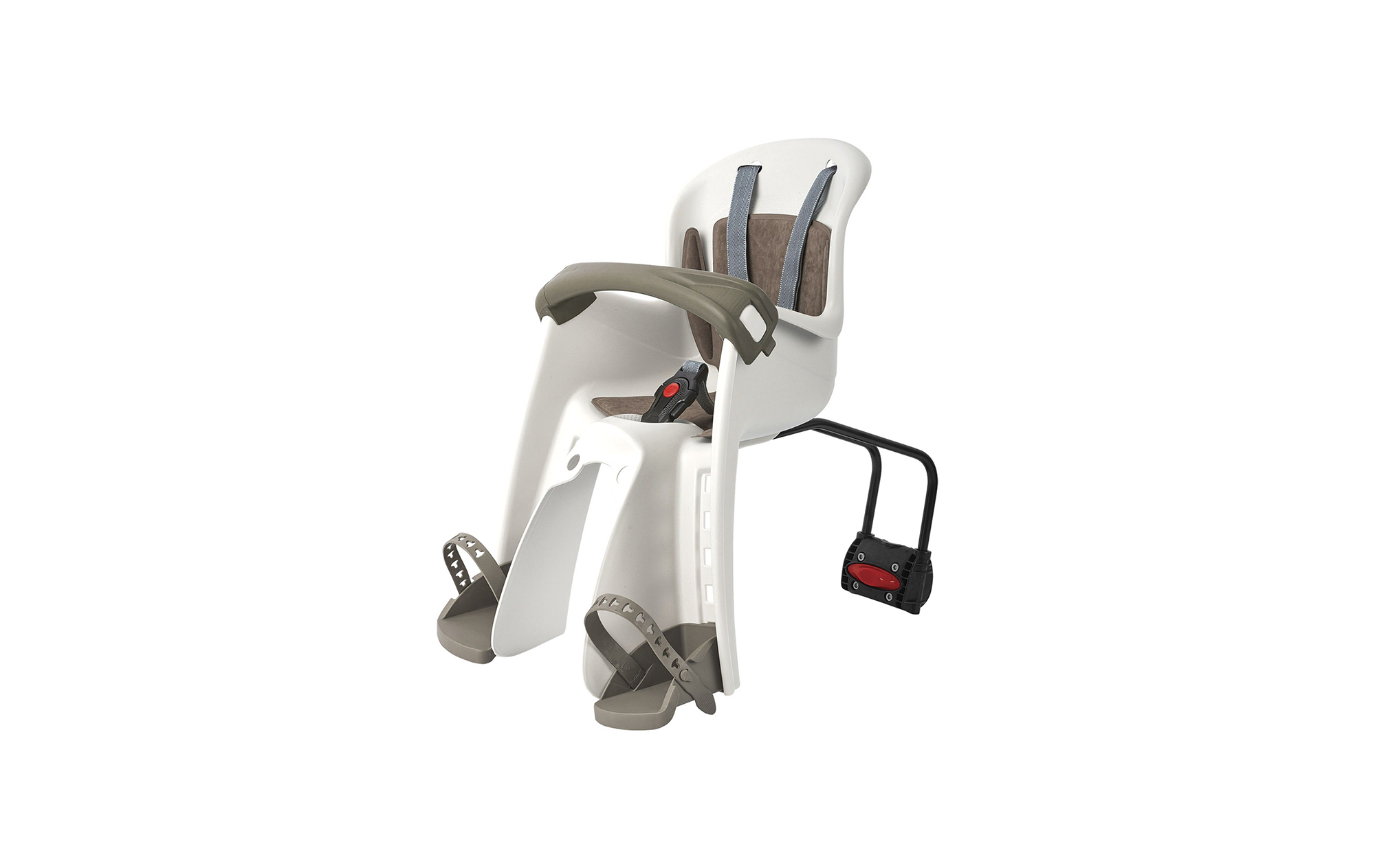 "Sedačka s držiakom na sedlovú trubku kruhového / oválneho tvaru; Na priemer od 28 - 40 mm; 3 - bodový nastaviteľný pás s bezpečnostným zapínaním; Ergonomické držadlo; Nastaviteľné stupačky v 5 polohách; Vyberateľné polstrovanie; Demontáž sedačky v priebehu pár sekúnd; Pre deti do 15 kg; Rozmery: šírka 374mm x výška 505mm x hĺbka 435mm; Váha: 2,30 kg; Farba: krémová-hnedá; Sedačky polisport nie sú určené pre montáž na karbónové a celoodpružené rámy"