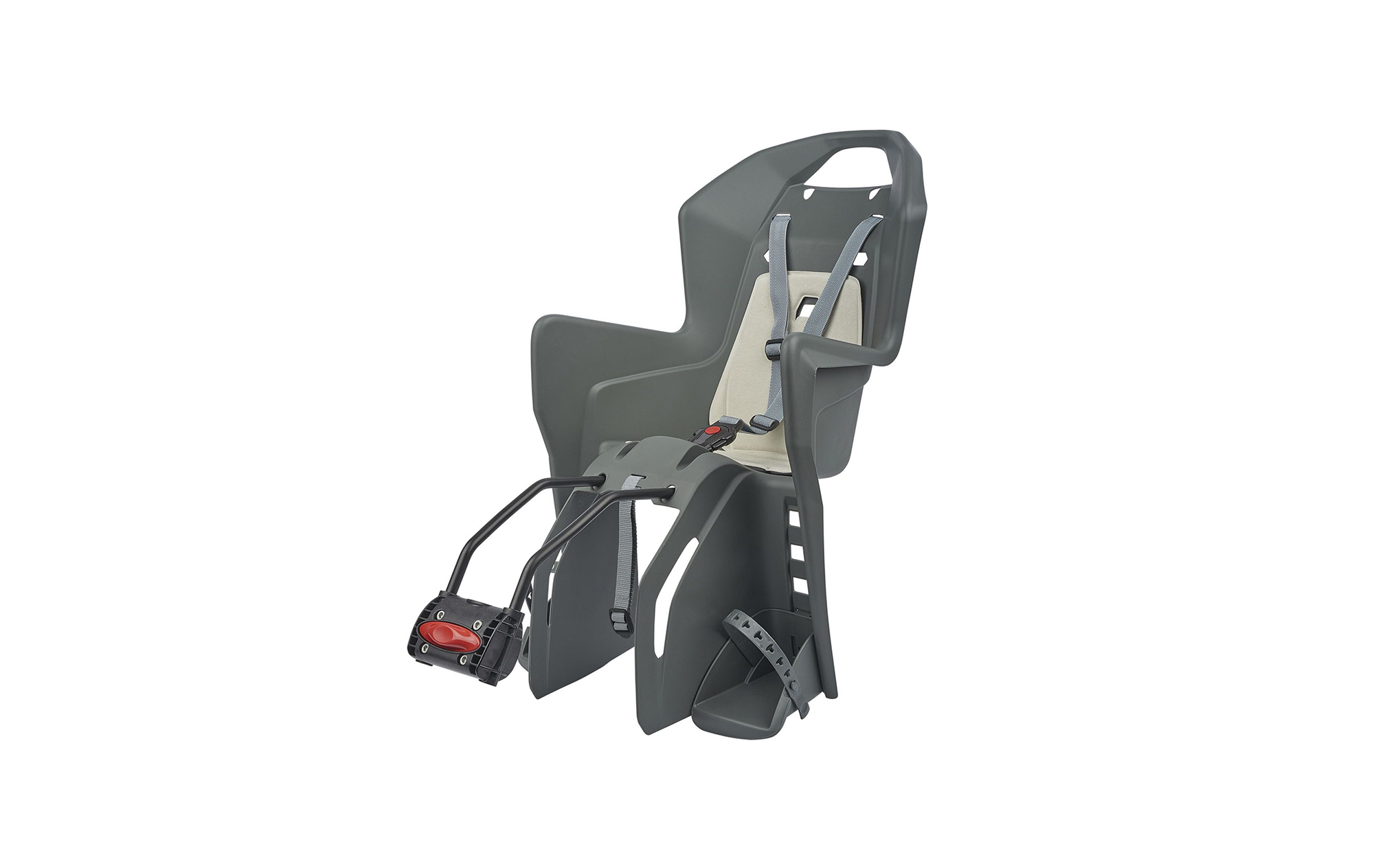 "Zadná Sedačka s držiakom na sedlovú trubku kruhového / oválneho tvaru; Na priemer od 28 - 40 mm, extra bezpečnostný popruh na sedlovku; Možnosť posúvať sedačku dopredu / dozadu; 3 - bodový nastaviteľný pás s bezpečnostným zapínaním (2 výškovo nastaviteľné polohy); Tvar sedačky prispôsobený k používaniu helmy; Nastaviteľné stupačky v 4 polohách; Vyberateľné polstrovanie; Pre deti do 22 kg; Rozmery: šírka 398mm x výška 748mm x hĺbka 450mm; Váha: 3,13 kg; Farba: tmavošedo-krémová; Sedačky polisport nie sú určené pre montáž na karbónové a celoodpružené rámy"