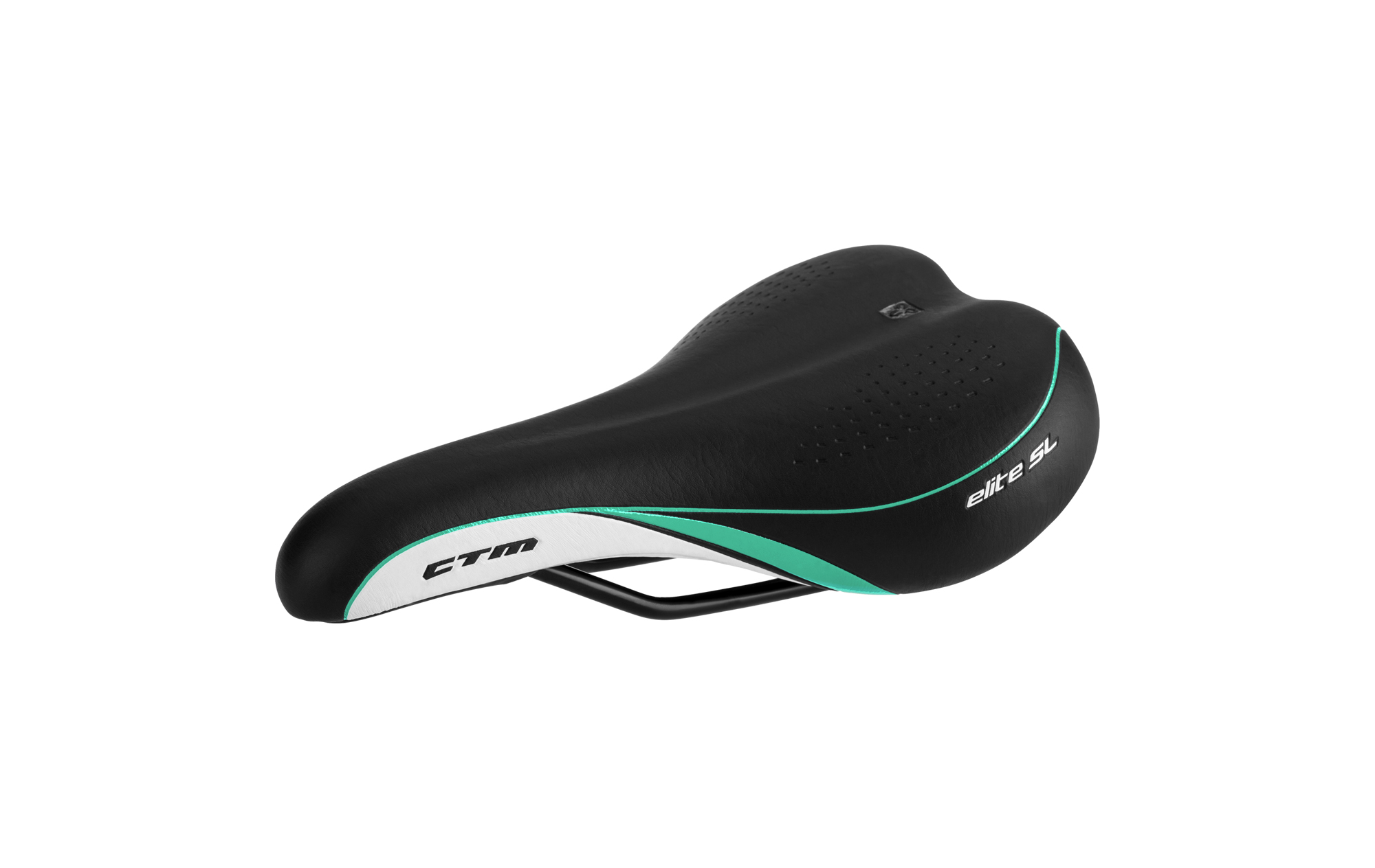 Pohodlné dámske sedlo bez zámku, CrMo lyžiny; Rozmer: 251x157 mm; Váha: 365g; Farba: čierna/bielo-tyrkysová"