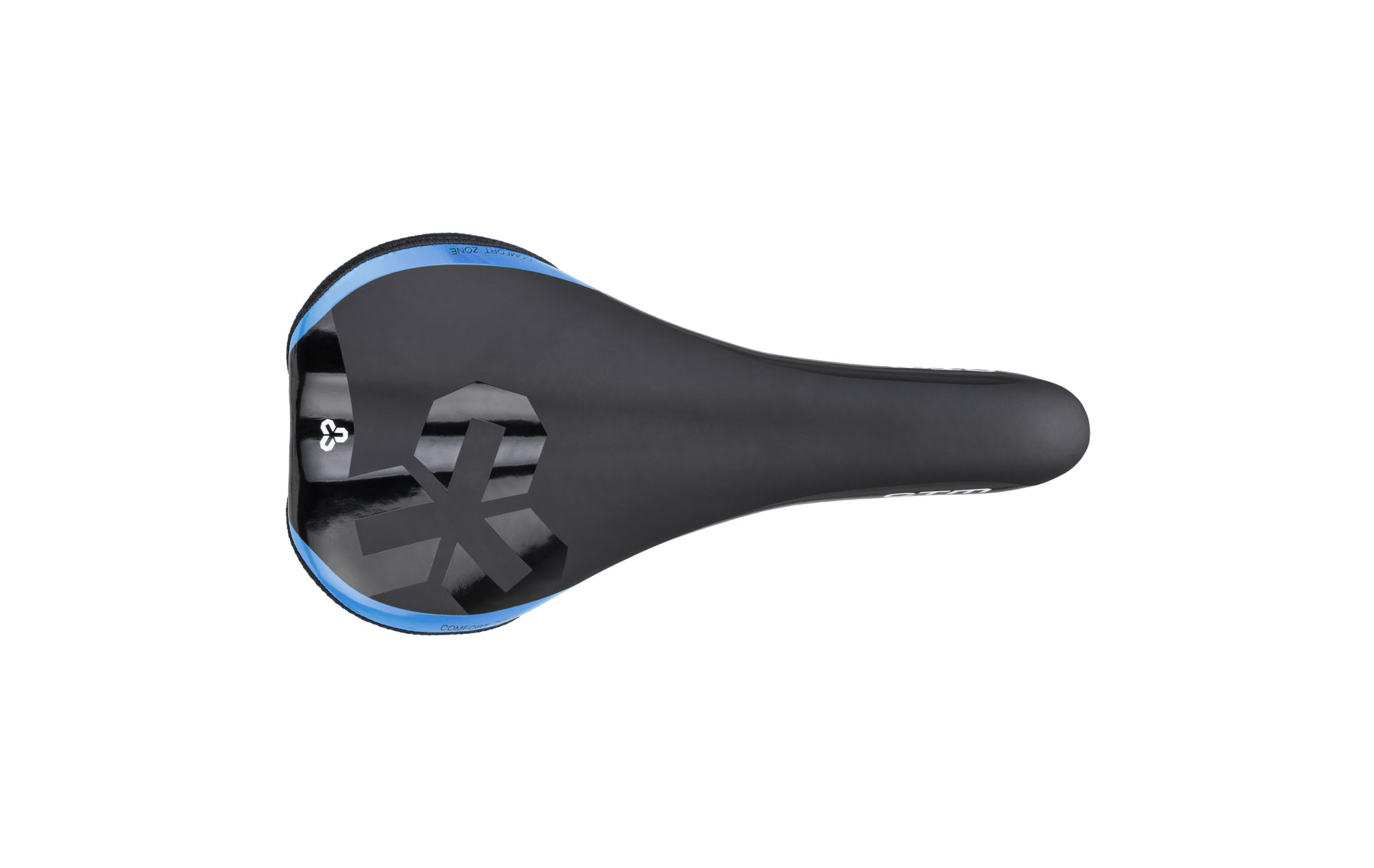 Pohodlné MTB sedlo bez zámku, CrMo lyžiny; Rozmer: 280x150 mm; Váha: 340g; Farba: čierna/perleťová modrá"